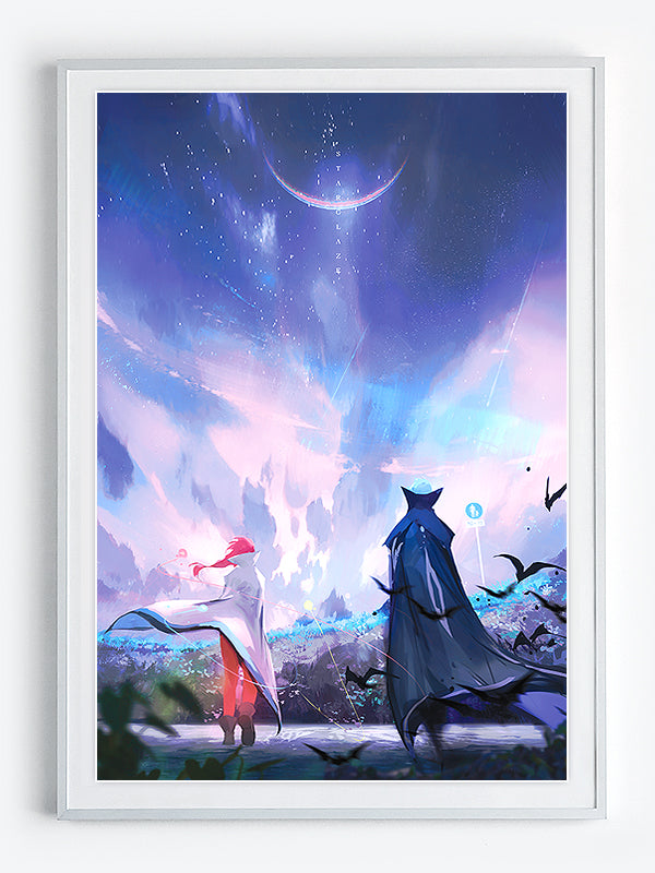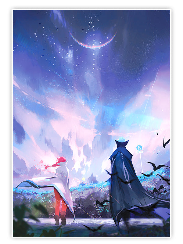 Amé and her sapling, Faye, headed through the night sky of Lione.
